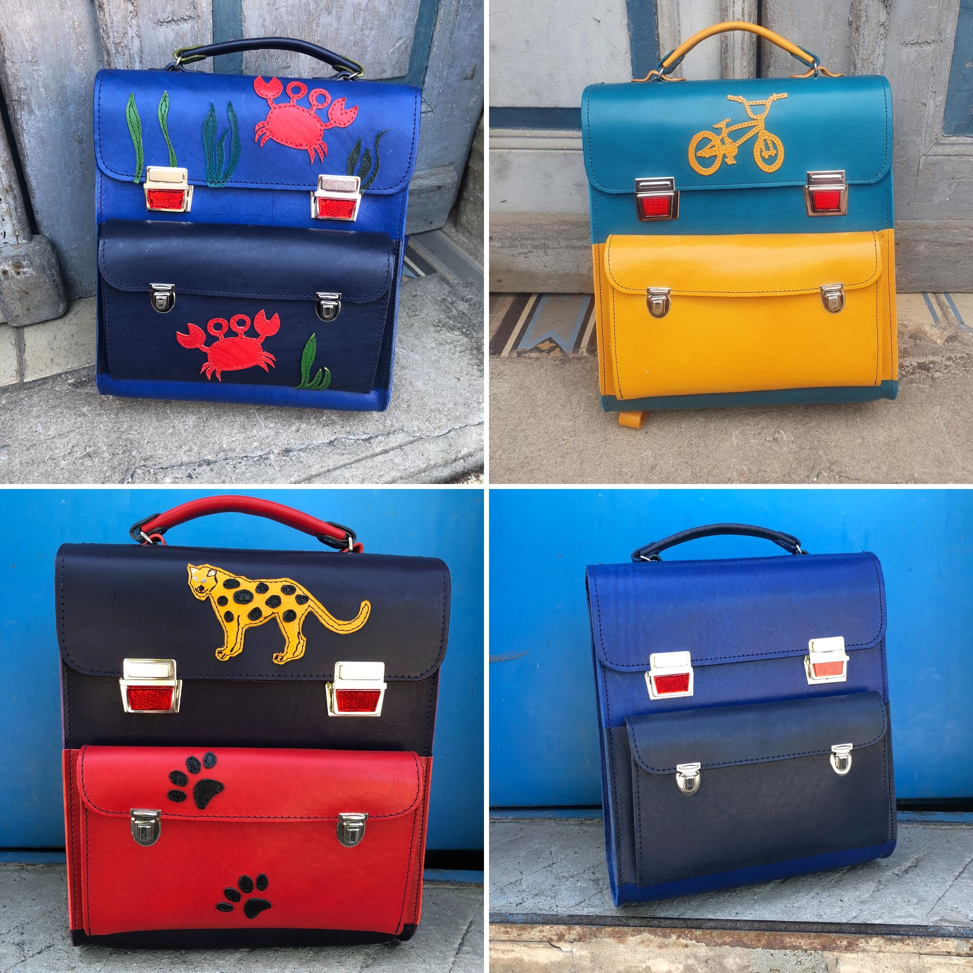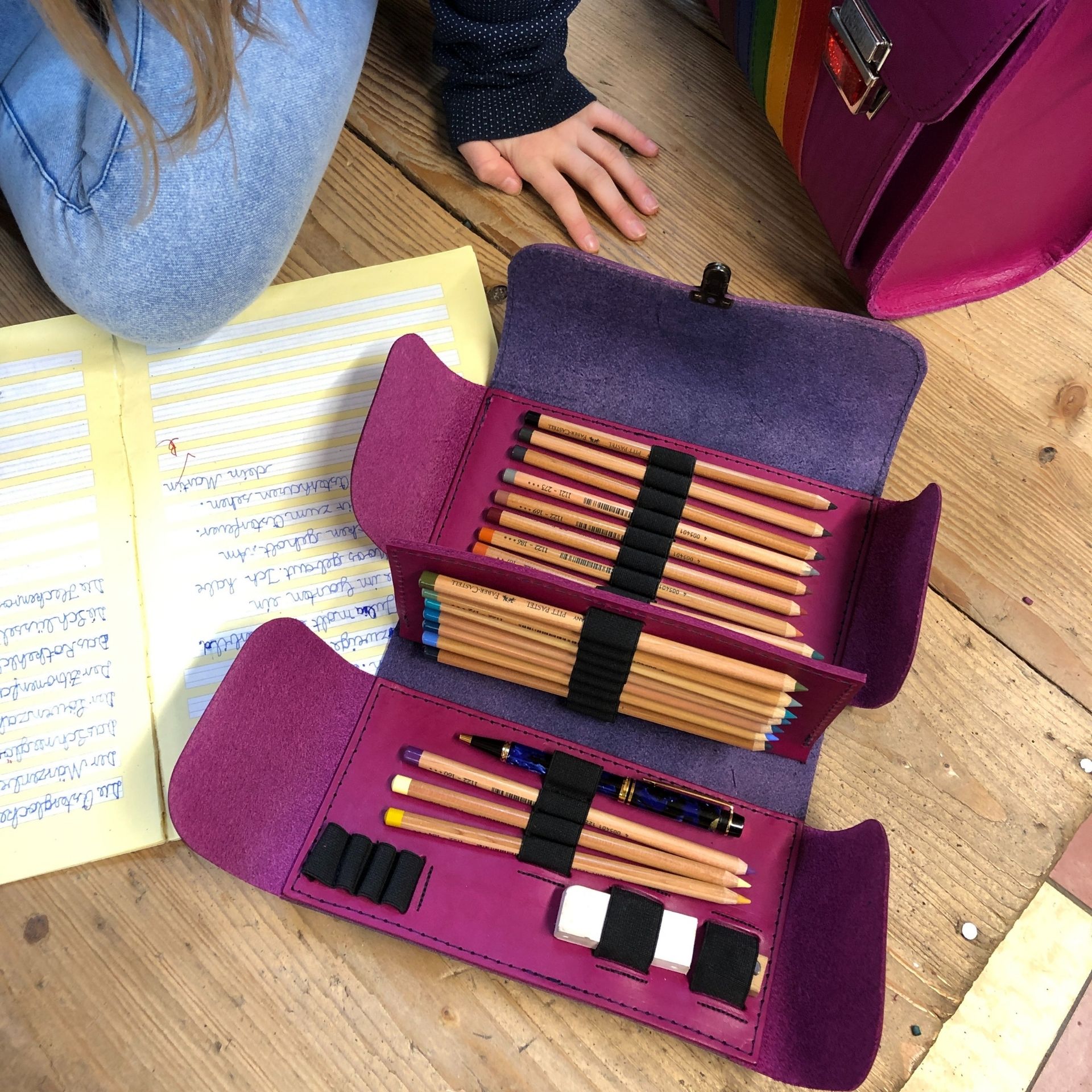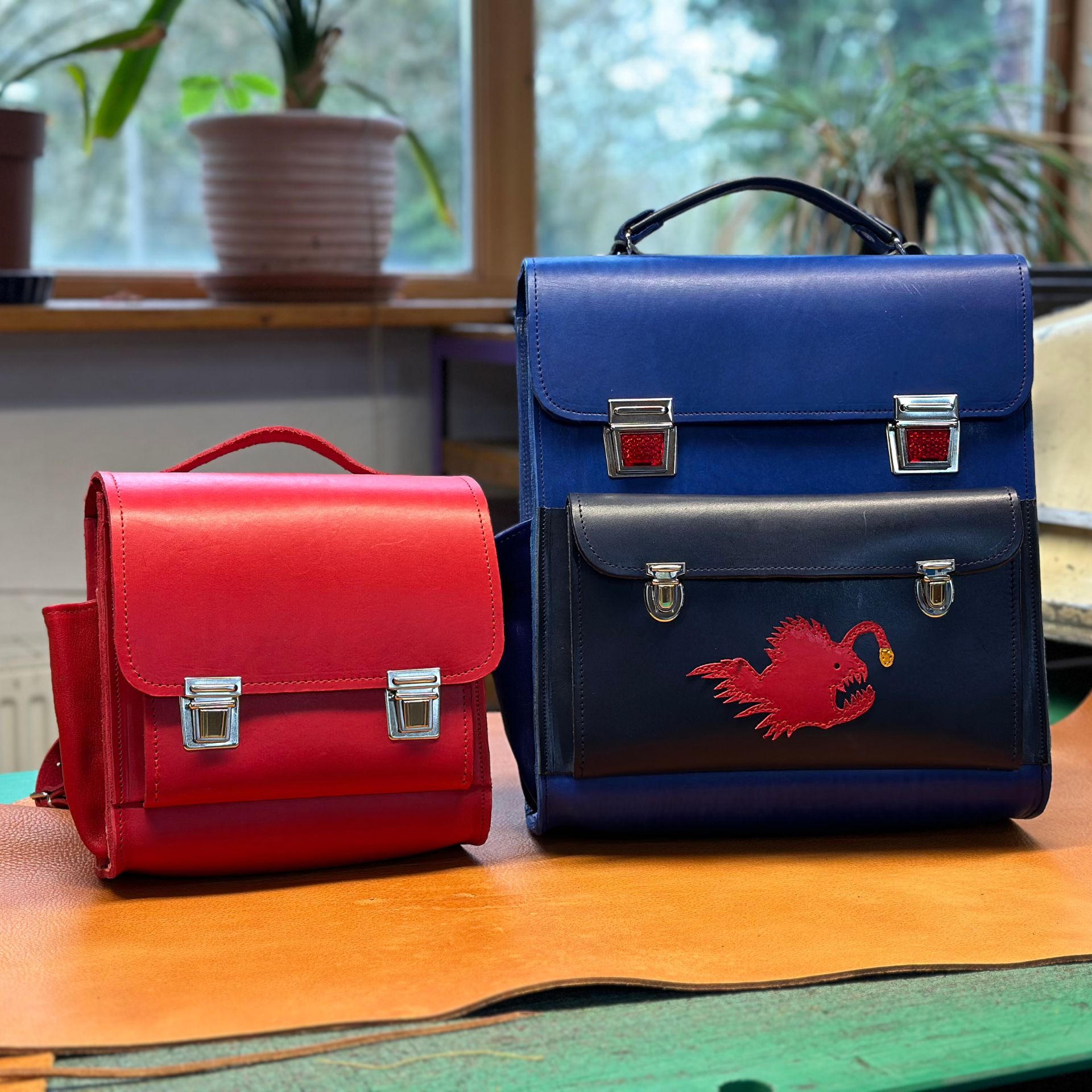 • Die Ranzen sind aus pflanzlich gegerbtem Leder gefertigt.
