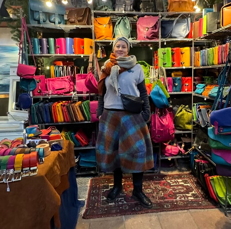 Schon seit 1986 ist Heidi dabei und jahrzehntelang das Gesicht der Lederwerkstatt auf unzähligen Kunsthandwerkermärkten. Ihr größtes Talent (neben dem Backen von köstlichen Torten!) ist allerdings die Näherei.