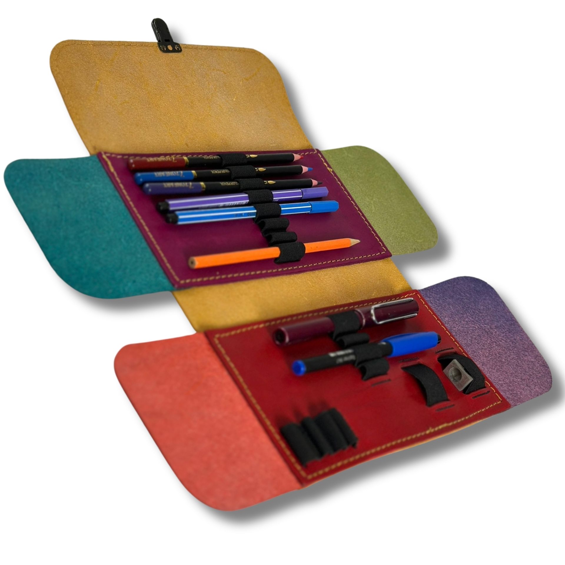 Unsere Schulmäppchen aus festem Blankleder bieten Platz für 12 oder 28 Stifte und Zubehör wie Spitzer, Patronen und vieles mehr.