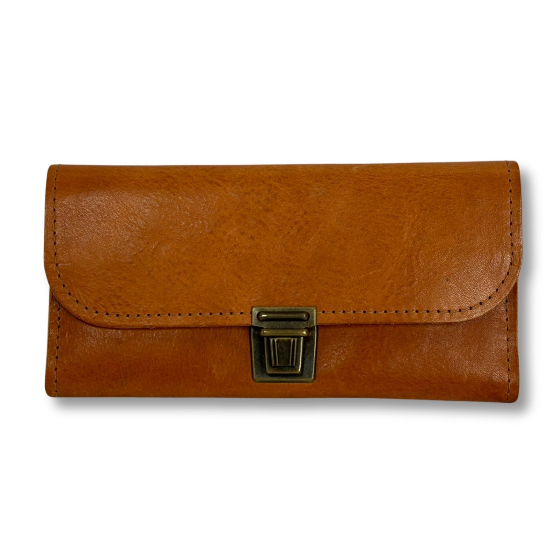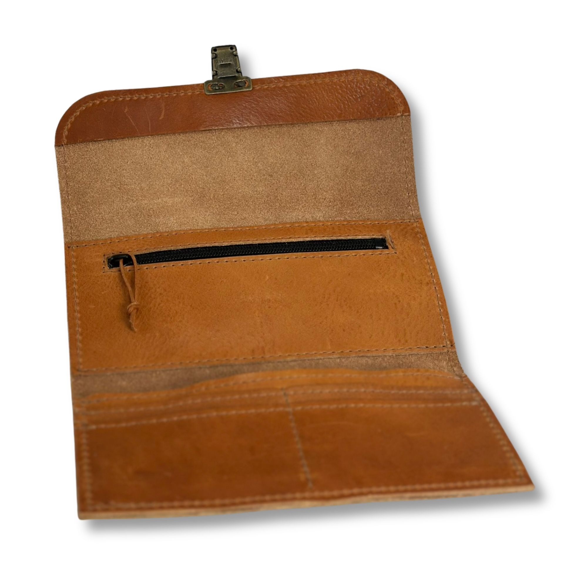 Unser praktischer,schlichter, flacher Geldbeutel hat die Außenmaße 20 x 9 cm und wird mit einem kleinen Steckverschluss geschlossen.